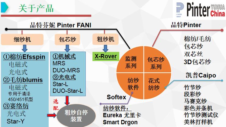 Pinter.FANI單錠監(jiān)測系統(tǒng),有光電式和電磁式兩種,包括:BLUMIS毛紡單錠監(jiān)測(專用于青澤450/451毛紡細(xì)紗機),Effispin棉紡單錠監(jiān)測(電磁式和光電式2大類7個系列),Star-yarn賽絡(luò)紡單錠監(jiān)測,Star-L/Duo Star-L包芯紗芯絲監(jiān)測,MRS/Duo MRS包芯紗芯絲監(jiān)測,和 R-Stop 粗紗自停裝置。
